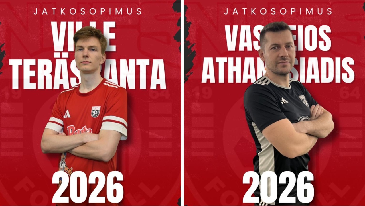 NuPS tekee kaksi tärkeää jatkosopimusta: puolustaja Ville Teräsranta ja hyökkääjä Vasileios "Pili" Athanasiadis jatkavat tiikeripaidassa kaudella 2026! Molemmat olivat olennainen osa viime kauden joukkuetta ja tuovat kaivattua kokemusta nuorentuneeseen ryhmään. Molempien sopimukset ovat yksivuotisia.
